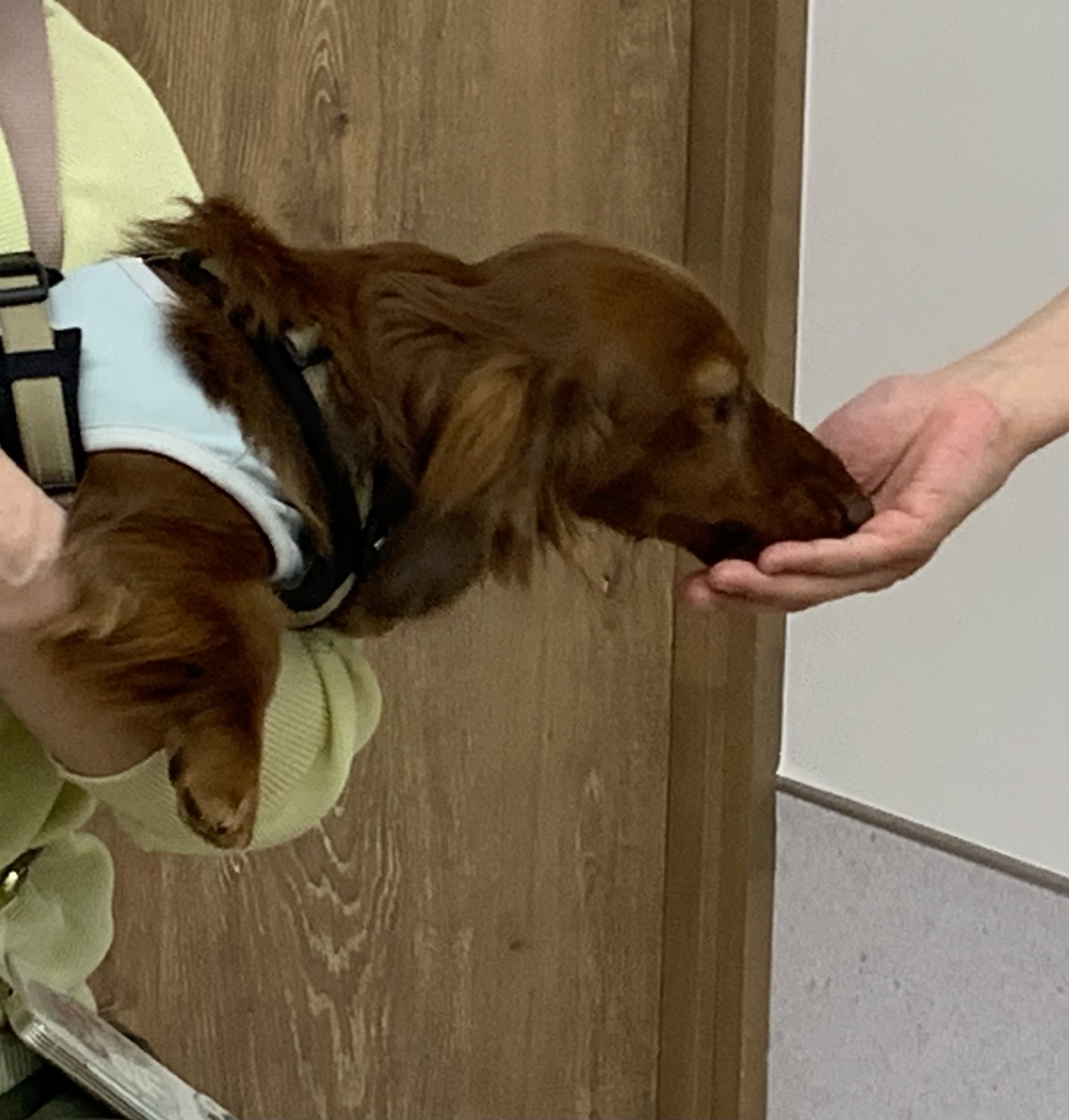 ハロちゃんは人が大好きで、飼い主さんの近くで動き回るような感じでしたが病院スタッフの所まで行き、嬉しそうになでてもらっていました😄