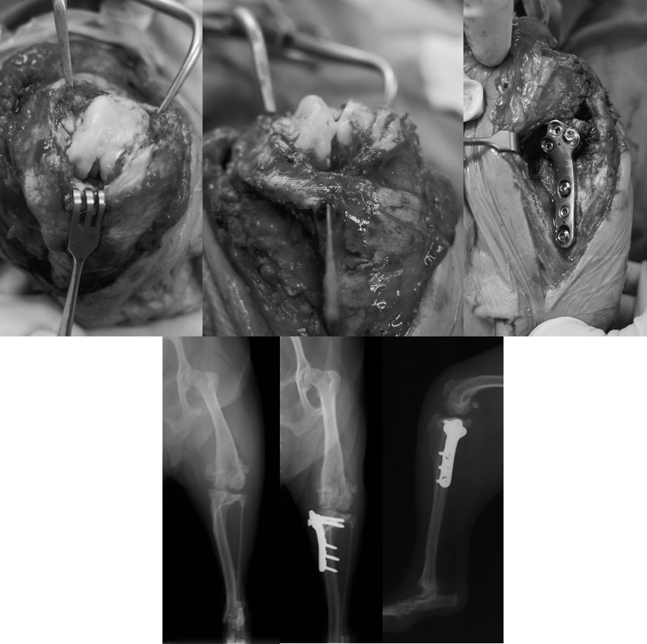 膝のお皿の脱臼整復手術とTPLOを同時におこなって治療しました