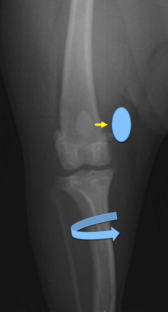 ワンちゃんの場合、膝のお皿の脱臼は外方脱臼と内方脱臼が一般的ですが、小型犬の多くは内方脱臼です