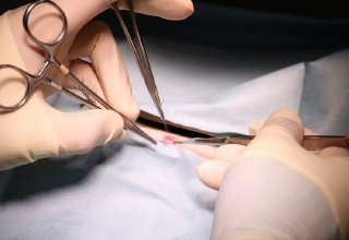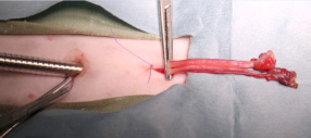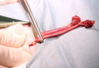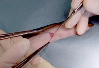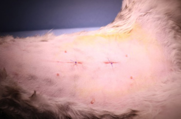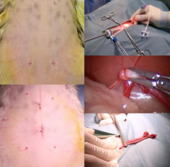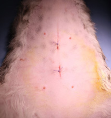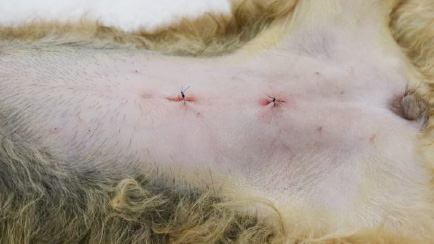 ※腹腔鏡での避妊手術は3か所に穴をあけることが主流ですが、場合によっては2か所の穴で手術することがあります