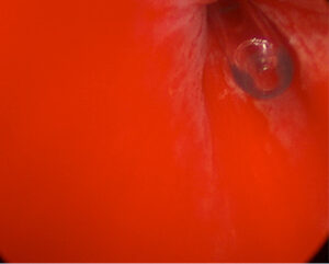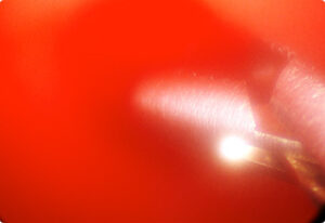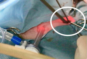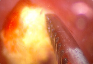 膀胱を数ミリ切開しただけで膀胱内の結石の様子がよく見える