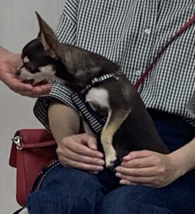ちゃおちゃんは興味はあるようで飼い主さんから離れてましたが、ちょっと怖いようで飼い主さんの方に戻ってました。